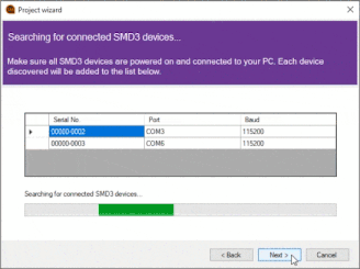 Included with the SMD3 is a powerful software package that allows you to easily configure and control multiple SMD3 devices simultaneously. The project wizard automatically scans for connected SMD3 devices and allows you to set a custom name for each device.