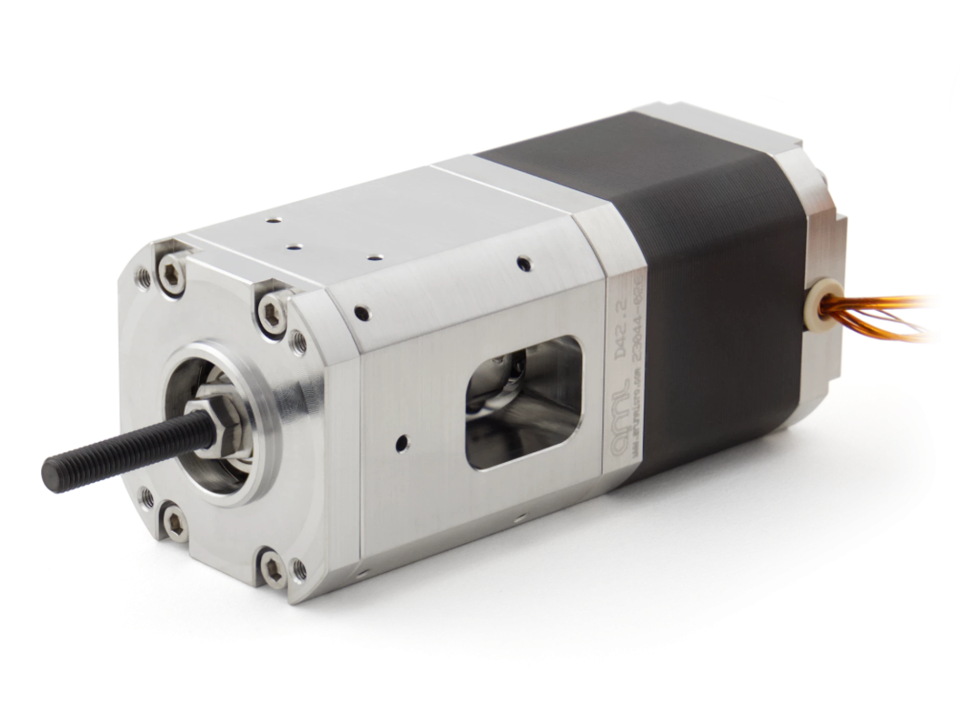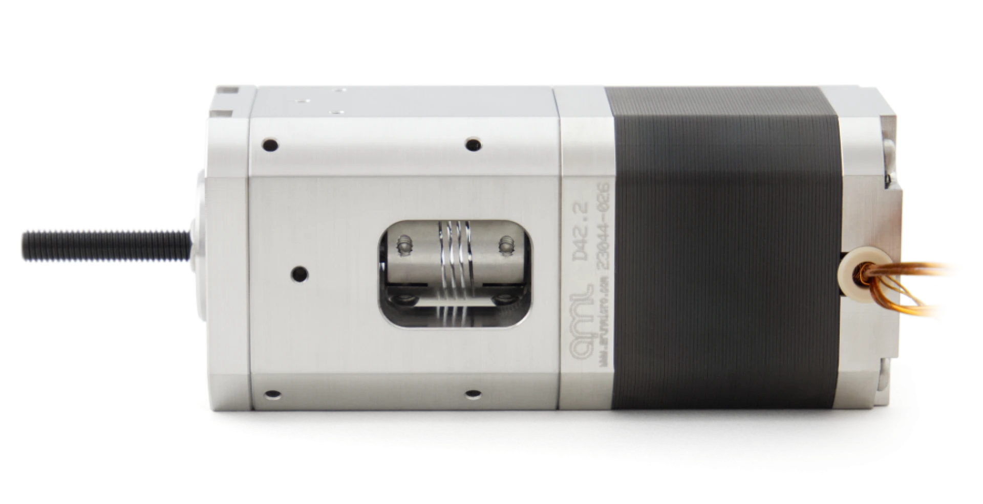 In addition to its high thrust capacity, the D42.2 200 N Thrust Drive is designed to be as compact as possible. The body of the drive and motor is just 98 mm long, with a 25 mm length M5x0.8 leadscrew. This makes the drive ideal for applications where space is limited. The leadscrew may be customised to suit the application. The drive maintains the same NEMA 17 sizing as the D42.2 motor throughout its entire length.