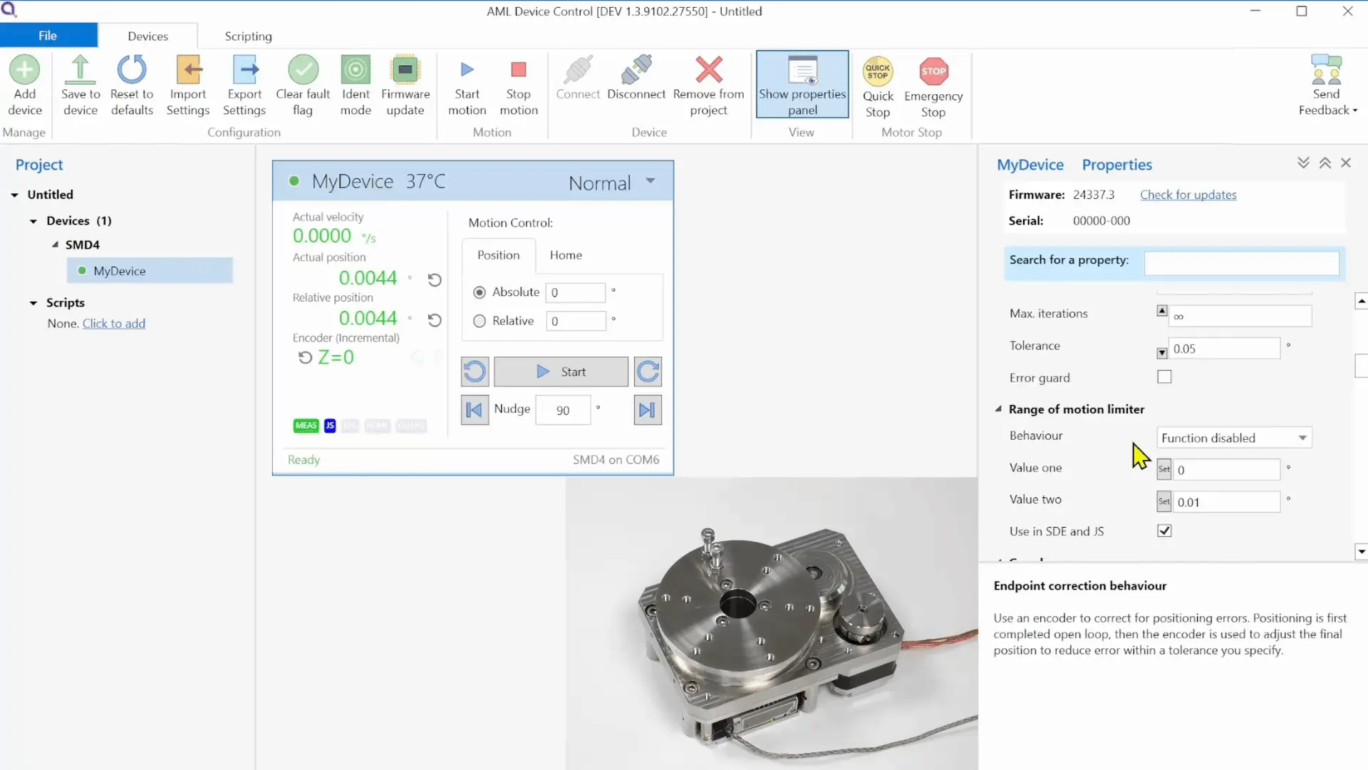 With the release of the SMD4-E, we are also releasing a powerful new version of the AML device control software and updated firmware for the SMD4. This includes brand new features relating to the configuration and control of encoders, alongside significant updates to how users can configure AML stepper motors. New features include: