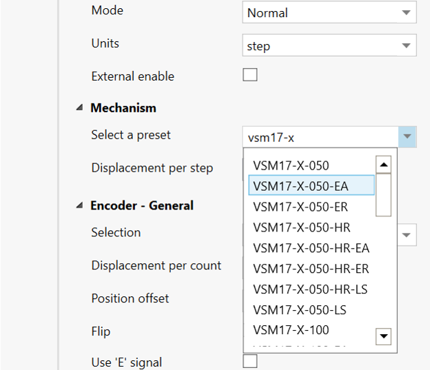 Control and configuration in AML Device Control Software is quick and easy. Connect the SMD4 by USB, Serial or ethernet, add it to your project, and use the new presets feature to select your mechanism from the drop-down list. The SMD4 will be configured with basic initial settings to get the mechanism up and running: